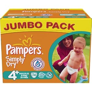 Die Pampers Simply Dry 4+ in der günstigen Vorratspackung ersparen den Weg zum Supermarkt und erleichtern das Shoppen insgeheim.. und nebenbei spart man auch noch ein bisschen Geld.